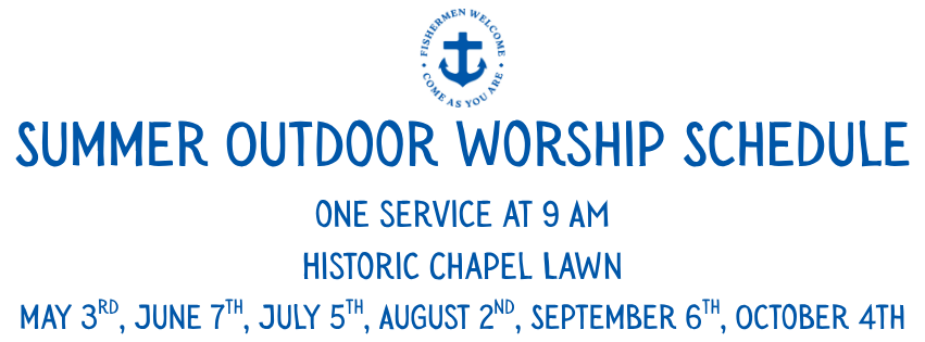 Outdoor Worship 2026 Schedule – 9 AMApril 14, 2026We are thrilled to bring back another season of outdoor worship at St. Andrew’s By-the-Sea. We will gather for one service at 9 a.m. on the lawn of the Historic Chapel the first Sunday of month for May-October.